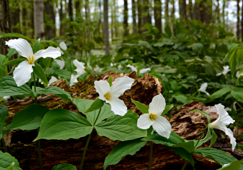 Of the over 1,250 species of flowering plants on the BRP, May Apple, Trillium, Bloodroot, Dogwood, Jack-in-the-Pulpit, Bluets, Wild Columbine, Bleeding Heart, and Fire Pink are among the many flowers to make their appearance in spring (late April and May).