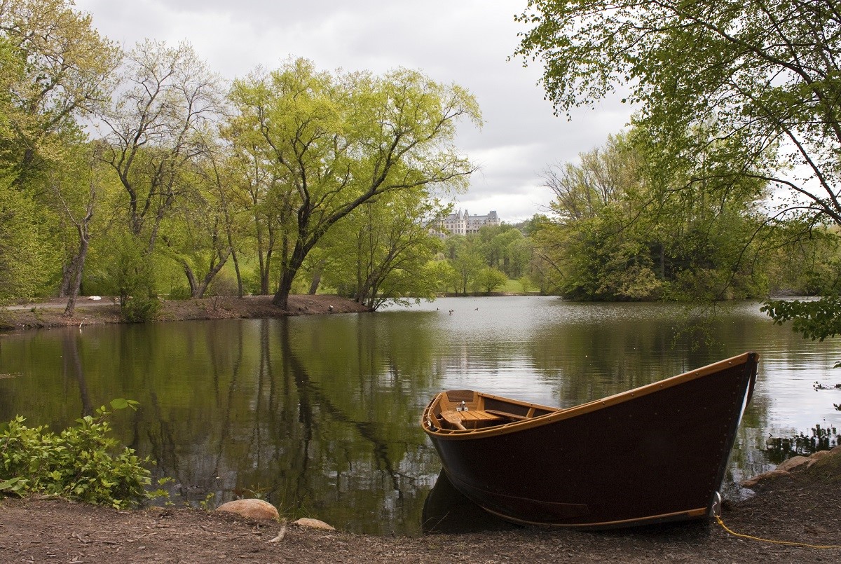 Row boat with the Biltmore Estate in the background.